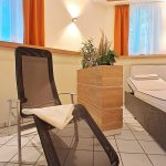 Der Ruheraum wirkt Ă€uĂerst kĂŒhl, ungemĂŒtlich und fast etwas orientalisch mit den Fensterverkleidungen in Geflecht-Optik, den verzierten Metall-Laternen und den vorhandenen VorhĂ€ngen. Die zahlreichen Heizkörper wirken ĂŒberdimensioniert â insbesondere in Kombination mit der bereits installierten FuĂbodenheizung. Â